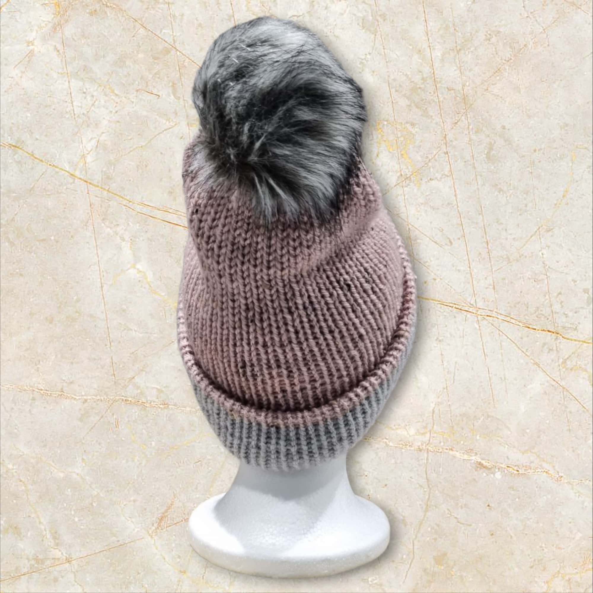 Introducing the elegantly crafted aran style reversible double layered hat – Pale Rose Hat, adorned with a striking grey or pink pom-pom. A must-have when out and about.