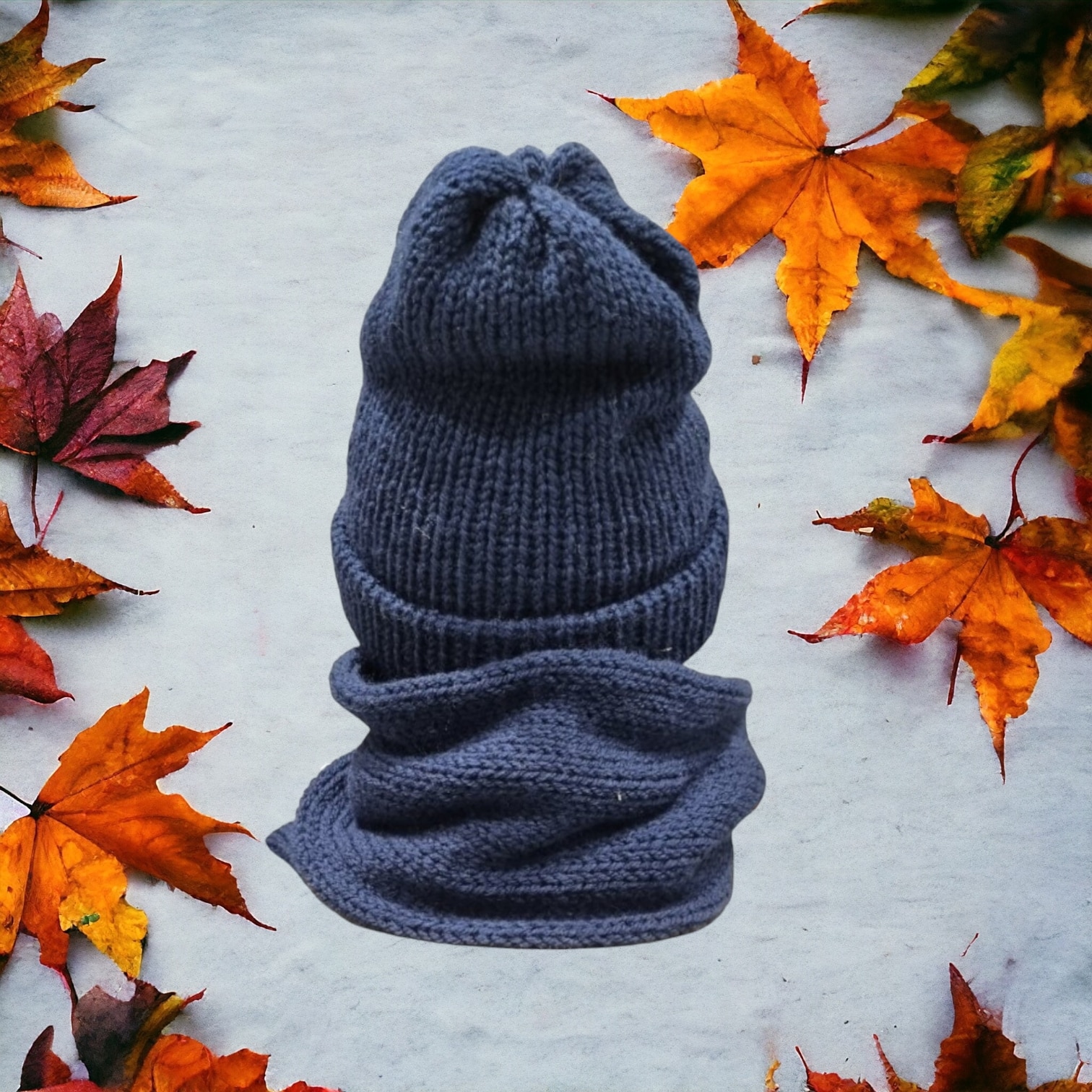Finish it with a matching classic midnight blue hat with an optional pompom.