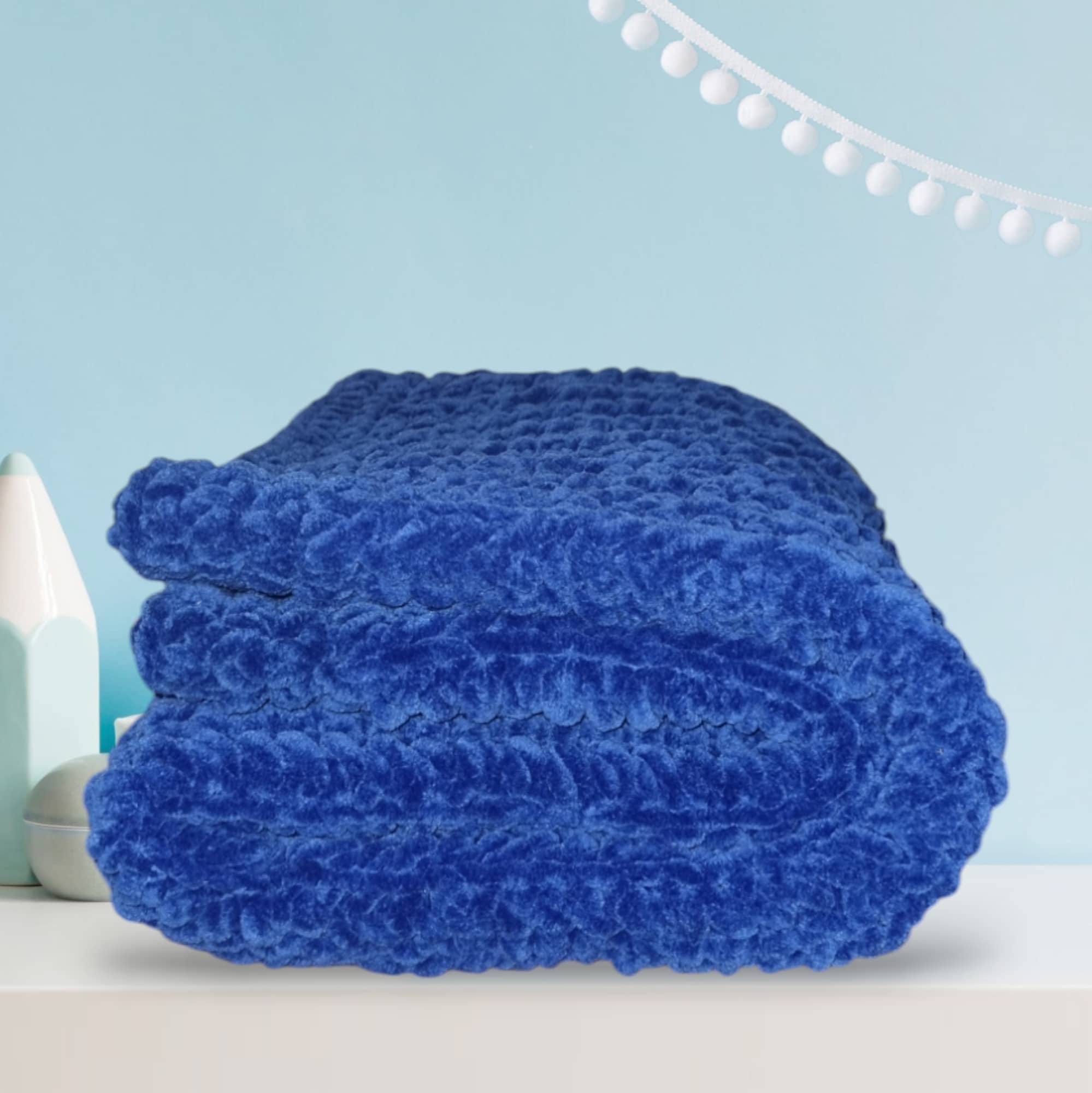 Hand Crocheted Super Soft Deep Blue Thick Multi-Use Blanket