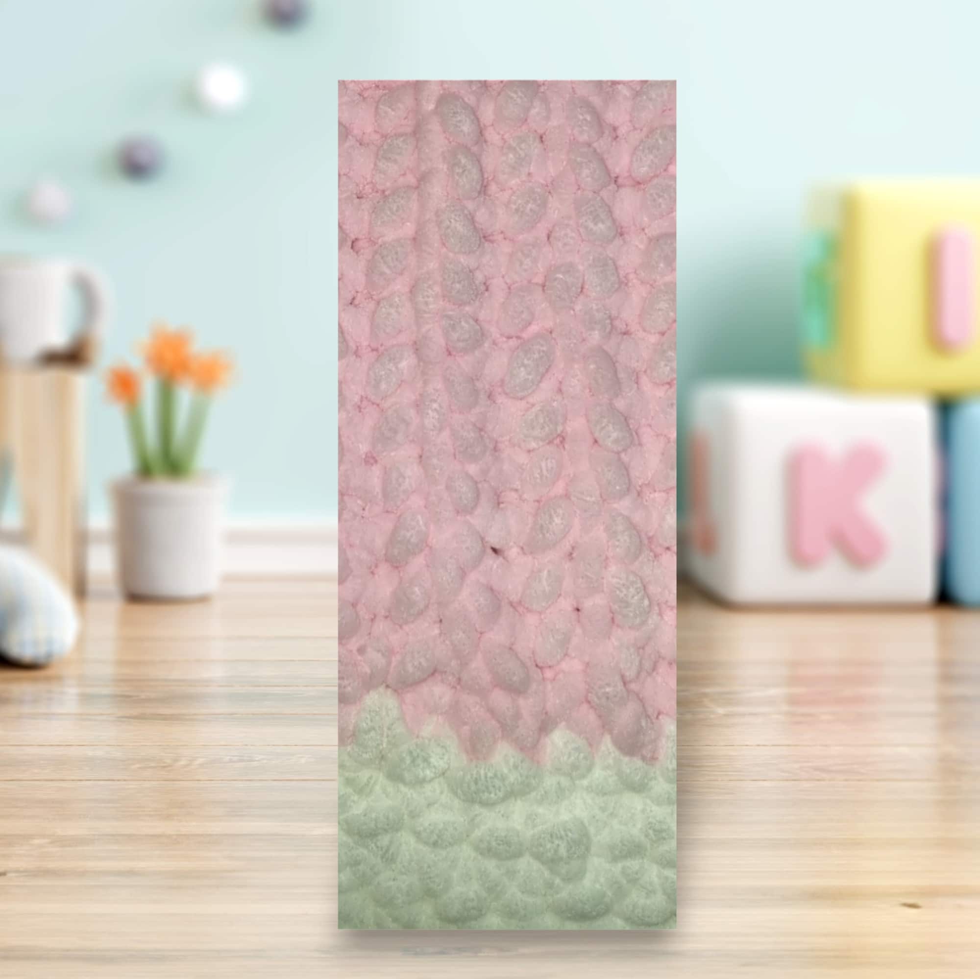 Keep your special one warm and comfy in a carefully handmade bright pink blanket featuring a white border featuring a deep stripped pattern. The size of the blanket gives it many uses from comfort on your sofa for story time or placed over them in their bed.