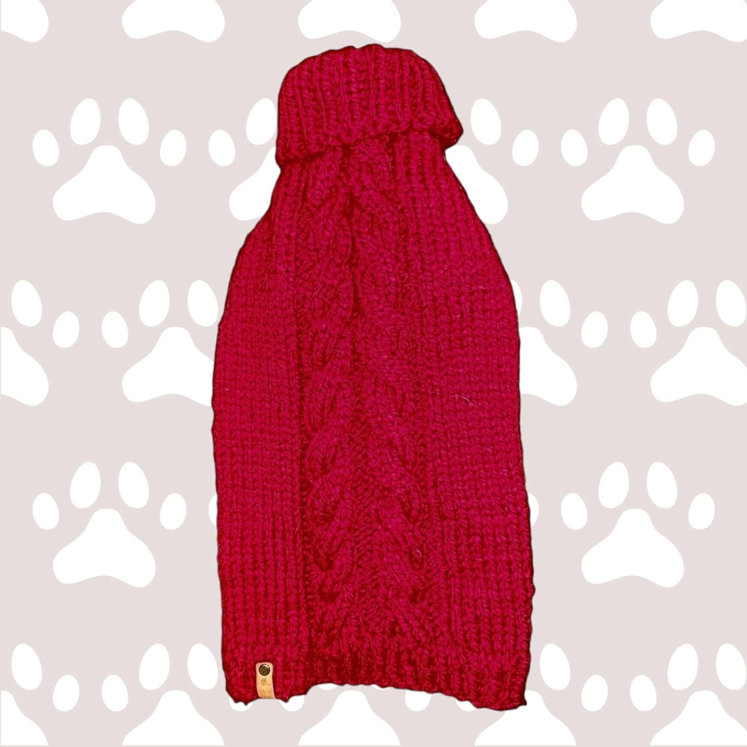 Hand knitted Fun Super Chunky 2 Cabled Dog Jumper in Rich Claret Red
