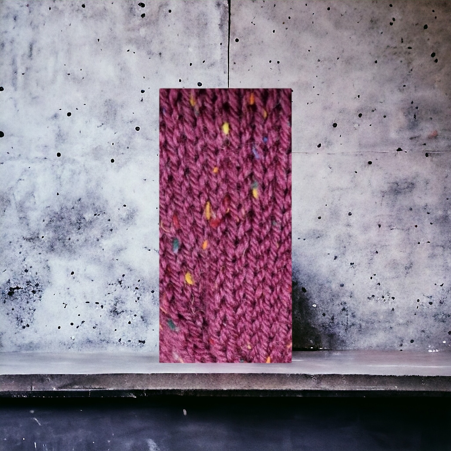 Ladies chunky handmade knitted luxuriously warm Aran style deep pink and dark rose flecked knitted hat.