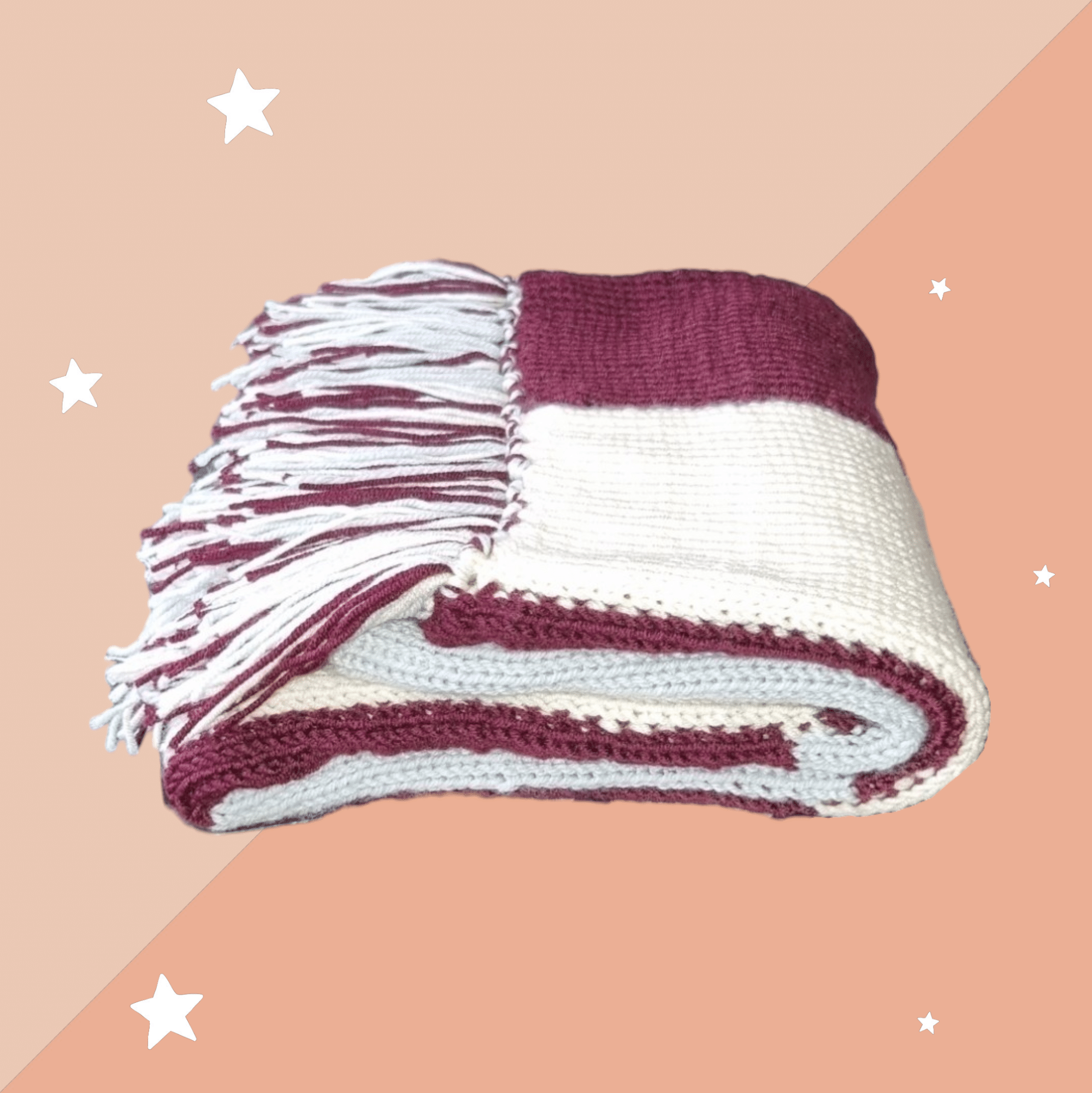 Luxuriously breathable soft cashmere feel blanket featuring a patchwork of 3 contrasting colours finished with attractive tassels. This is a wonderful soft versatile blanket it will give your baby great comfort.