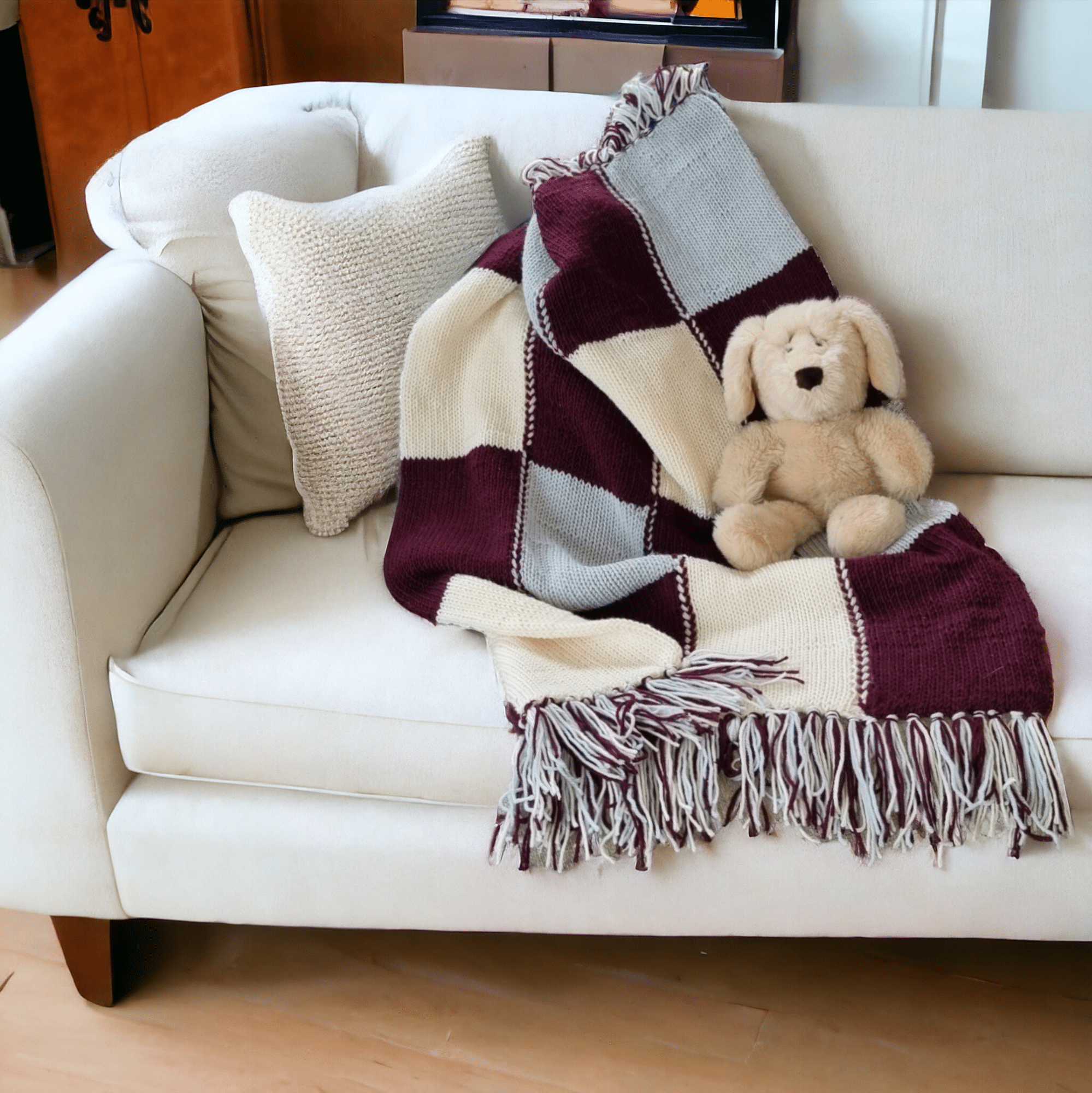 Luxuriously Soft Cashmere Feel Patchwork Multi-Use Blanket in 2 Colours – Blue & Burgundy