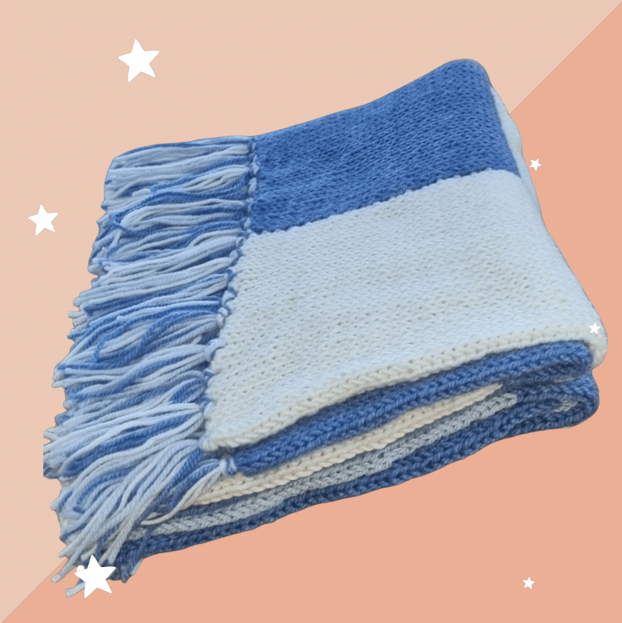Luxuriously soft patchwork blanket with a cashmere feel featuring 3 contrasting colours with matching tassels. This blanket will give your baby great comfort with a wonderful soft feel against them. Swaddle them in the softness as a baby, use in their cot, buggy, car seat and as a comfort blanket as they grow.