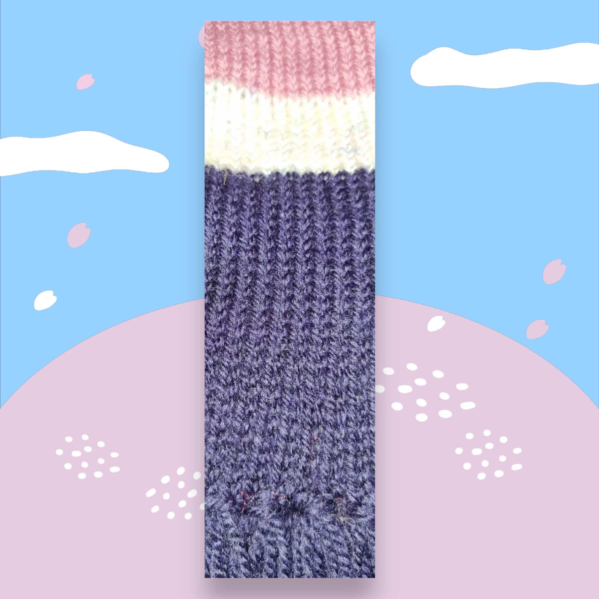 Super soft and warm Triple Pink Scarf great for everyday wear. Handmade using deep purple, speckled cream and pale pink wool. Thick enough to make your child feeling warm. The scarf is finished with matching deep purple tassels.