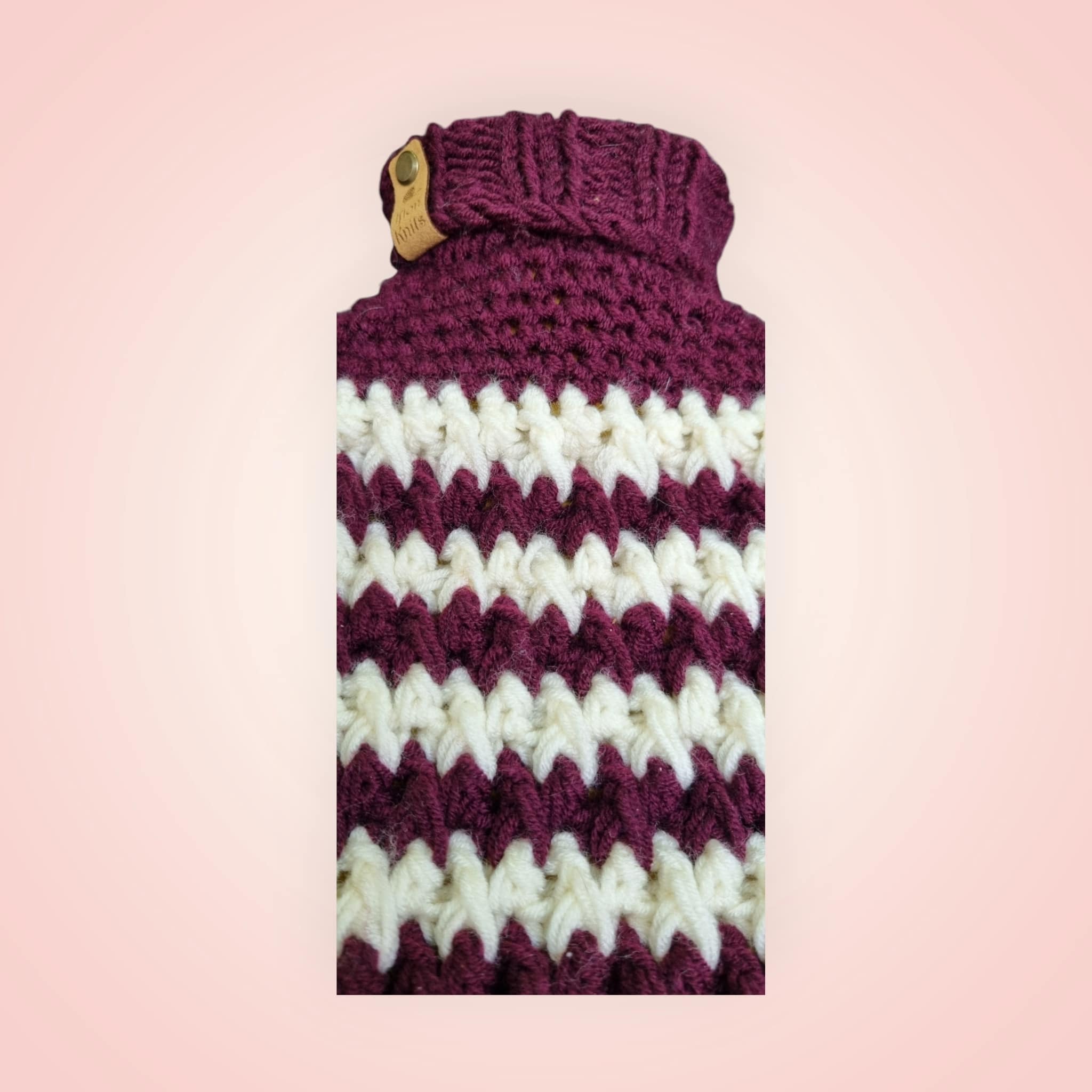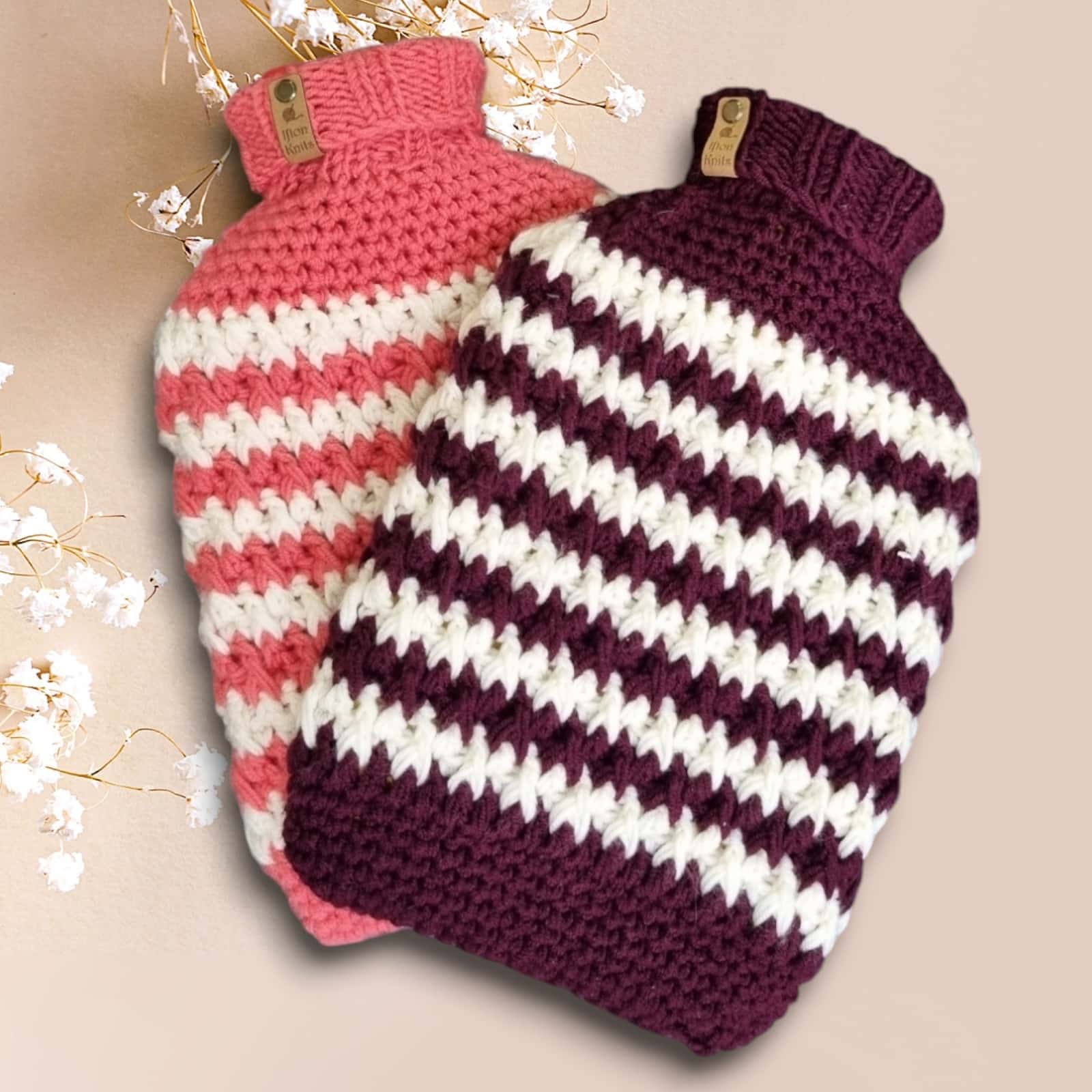 2 Stripped Hand Crocheted Hot Water Bottle Cover
