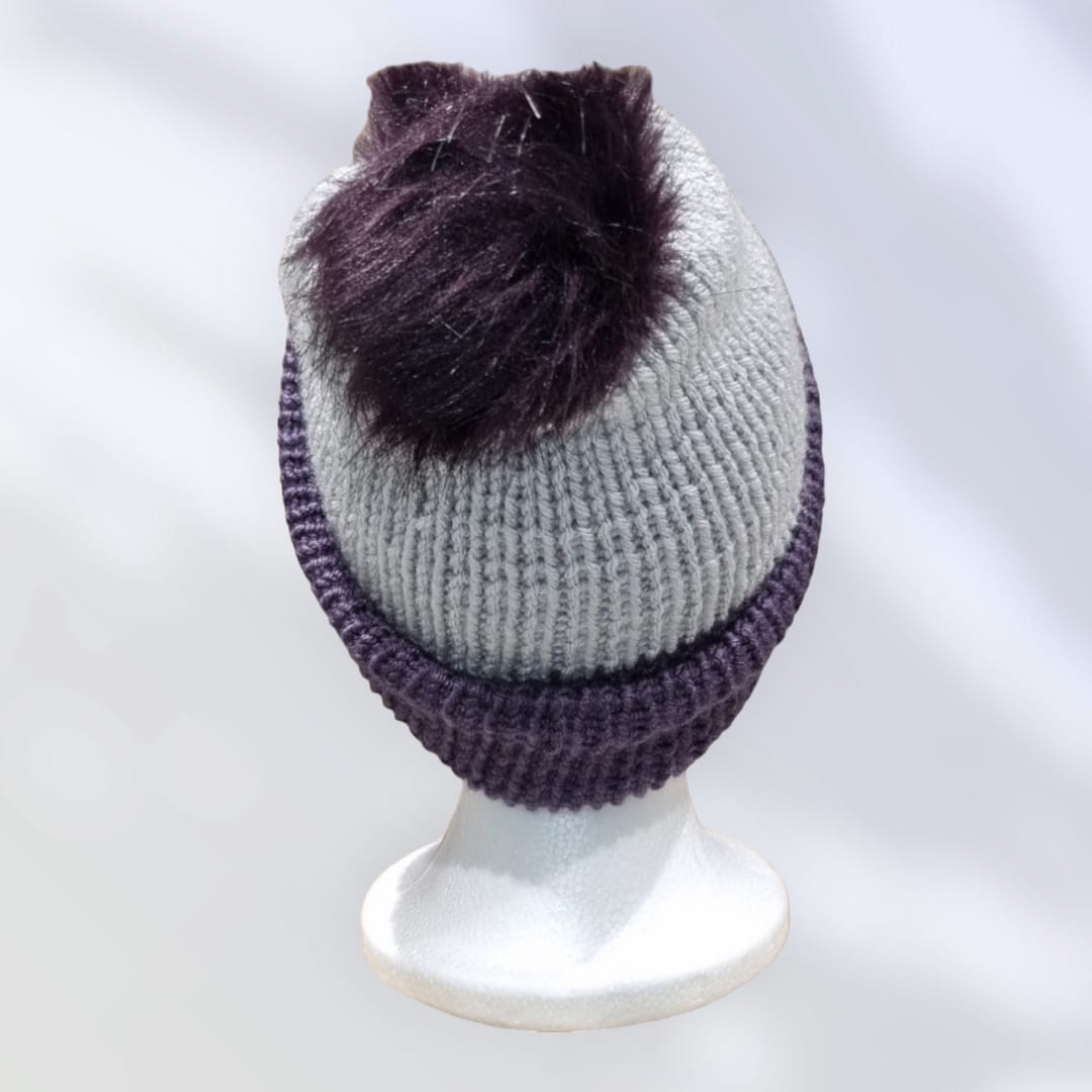 To complete the hat adorned it with a luxurious removable pom-pom 10 cm faux fur pompom to finish of the winter look. Choose from purple, pink or grey.